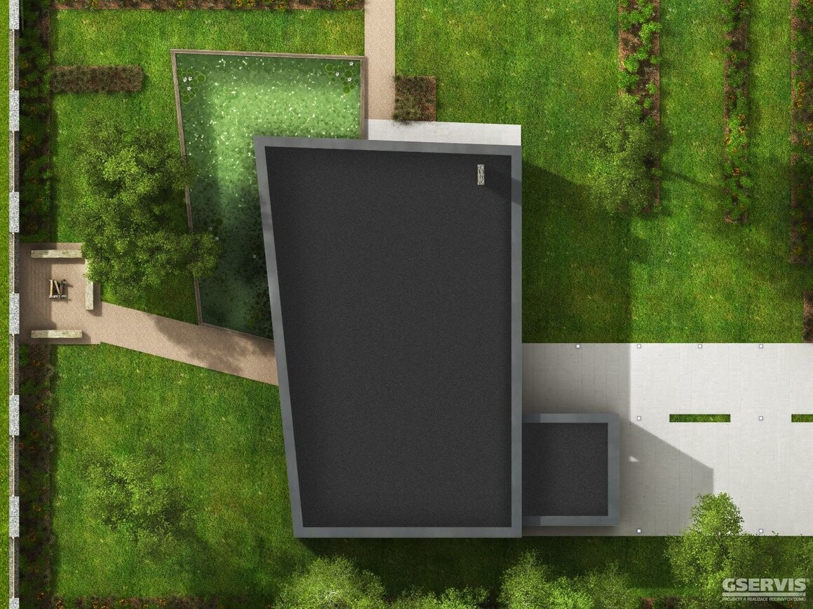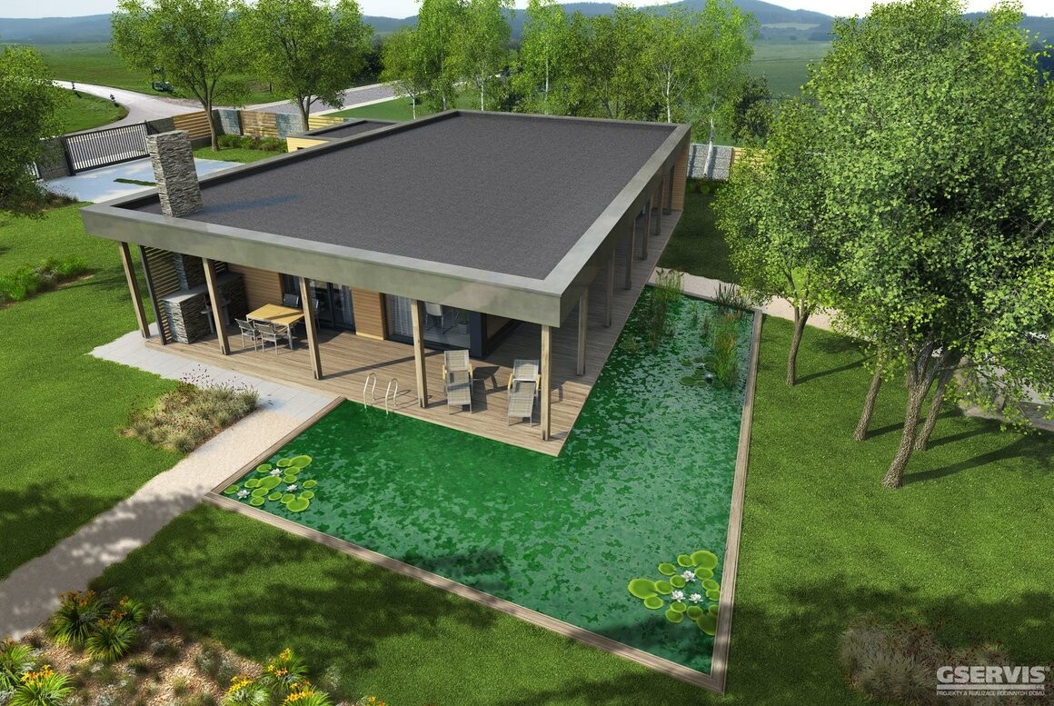 Дом большего размера категории удобной для низкой окружающей застройки на пологий участок. Большой свес крыши достаточно покрыта главный вход и террасу на задней части дома. Свес крыши в летнее время служит щитом французские окна на солнечной стороне. В качестве основной области связи обслуживает центральный коридор, который соединяет все помещения. Дневная зона включает в себя открытую планировку гостиной и кухней с выходом на террасу.