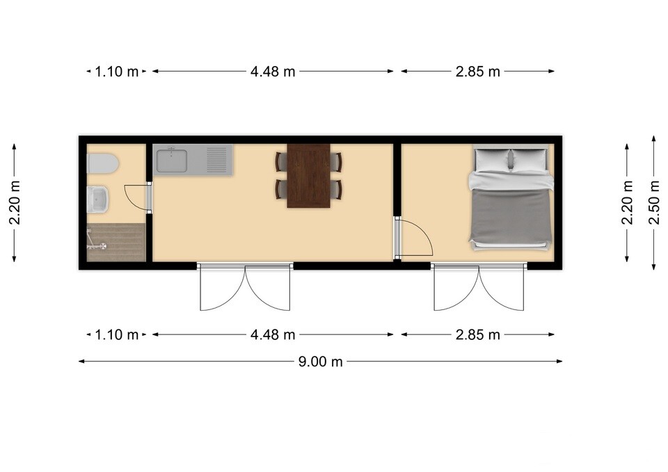 - Внешняя дверь: металлическая, утепленная, с двойным напылением, в комплект двери входит фурнитура, замок и глазок.
