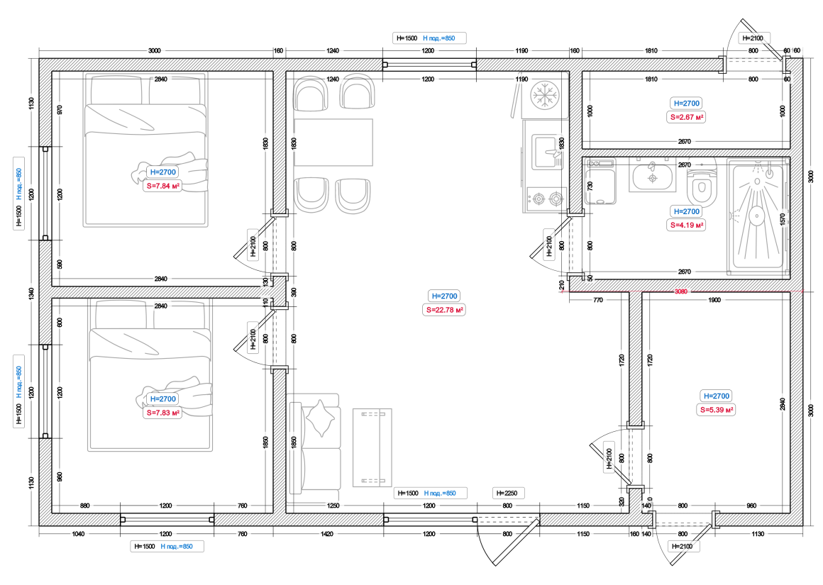 - Материал стен (каркас) из высококачественной доски 1 сорта 150х50мм с шагом стоек не более 600мм, с использованием усиленной крепежной системы и дополнительной защитой каркаса от "мостиков холода".