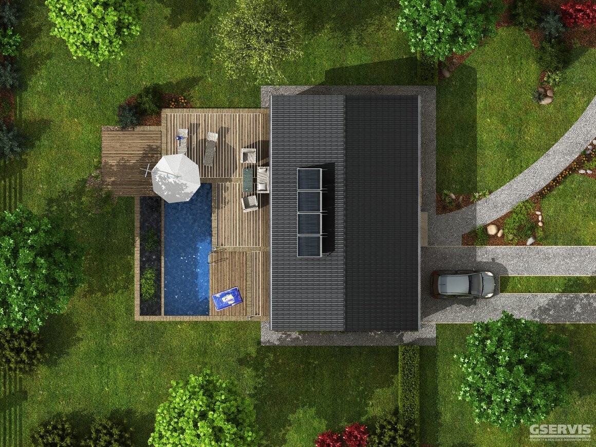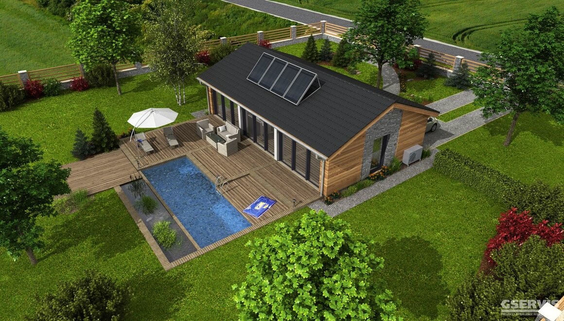 Разработан в пассивных стандартах и отвечает требованиям , предъявляемым к пассивного дома с удельным потреблением тепловой 15 кВт · ч / m2. Дом будет удовлетворять потребности 3-4 семей членов.