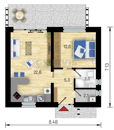 Дом "В-54-16" представляет собой дом небольшого размера. Его внутренняя планировка отвечают требованиям для жилья семьи из 3 человек. Благодаря большому остеклению, в доме достаточное количество дневного света.